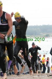 Das Schwimmen gestaltete sich dann etwas schwierig, nicht nur aufgrund des kurzen Landgangs! Aufgrund der hohen Leistungsdichte, gab es ständig jemanden, der gerne seitlich über mich drüber geschwommen wäre oder sich an meinen Füßen festhalten wollte. Wäre doch aber auch komisch, wenn das im Triathlon mal nicht so wäre… 😉