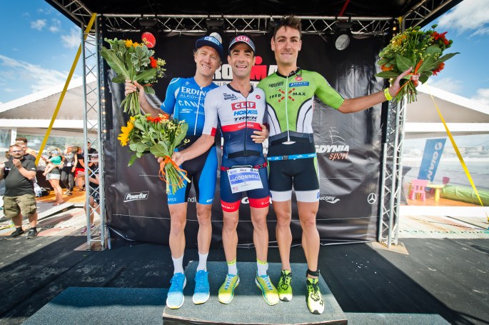 Optimal vorbereitet also, stand ich am Sonntag-Morgen an der Startlinie. Das Schwimmen lief nicht besonders gut, mir fehlte etwas der Wille die Komfortzone zu verlassen. Auch der erste Wechsel war bescheiden. Ich verlor mein Visier und musste einen kleinen Defekt am Radschuh-Verschluss beheben, bevor der Wettkampf für mich endlich richtig los ging. Ich kam gut voran, auch wenn sich die Beine noch nicht wieder ganz frisch anfühlten und ich etwas unter meinen anvisierten Wattwerten bleiben musste. Nach ca. 30 km konnte ich die große Verfolgergruppe ein- und direkt überholen, Nils Frommhold und Timothy O’Donnell waren ein Stück voraus. Zwei Athleten folgten mir im fairen Abstand, waren allerdings keine Hilfe um das Tempo hochzuhalten.