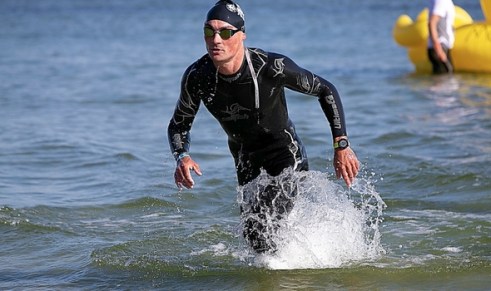 Ausgeruht und motiviert ging es schließlich am Sonntag an den Start. Die Ostsee zeigte sich spiegelglatt, kaum eine Wolke am Himmel, die Bedingungen waren perfekt. Mein Schwimmen war es wieder einmal nicht. Meine Leistung war zwar etwas besser, als in den letzten beiden Rennen, da die Schwimmstrecke aber über 300 m zu viel hatte, war mein Rückstand nicht wirklich geringer. Über 3 min waren es schließlich auf den Spitzenschwimmer Florian Angert und ca. 2:30 min auf dessen Verfolger um Hawaii-Sieger Patrick Lange. Nach dem Schwimmausstieg galt es noch ca. 1 km quer durch Binz zu Laufen, bis wir endlich auf das Rad steigen konnten.