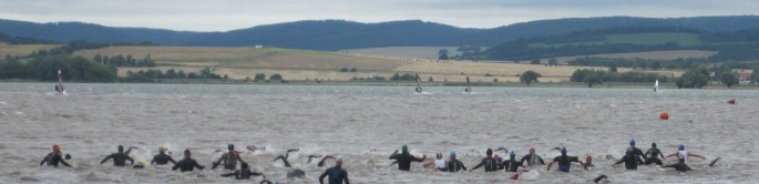 Das Schwimmen gestaltete sich dann etwas schwierig, nicht nur aufgrund des kurzen Landgangs! Aufgrund der hohen Leistungsdichte, gab es ständig jemanden, der gerne seitlich über mich drüber geschwommen wäre oder sich an meinen Füßen festhalten wollte. Wäre doch aber auch komisch, wenn das im Triathlon mal nicht so wäre… 😉