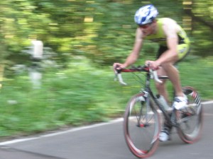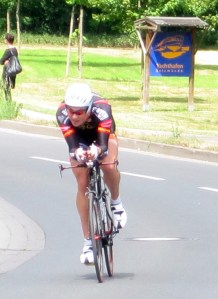 In der Wechselzone hatte dann leider der Wind für etwas “Unordnung” gesorgt, so lagen auch meine sieben Sachen nicht mehr geordnet auf dem Lenker sondern kunstvoll ums Rad herum verstreut – Dementsprechend dauerte mein Wechsel etwas länger und ich ging kurz hinter Thomschke und Dunse auf die verdammt schwere Radstrecke! Dort trat ich erstmal recht zügig an um den Anschluss wiederherzustellen – was mir auch kurzzeitig gelang – und wovon ich mich dann auf etwa drei von fünf Runden erholen musste! 😉 Also waren die beiden auch schnell wieder weg – nur Matthias sah ich manchmal noch am Horizont.