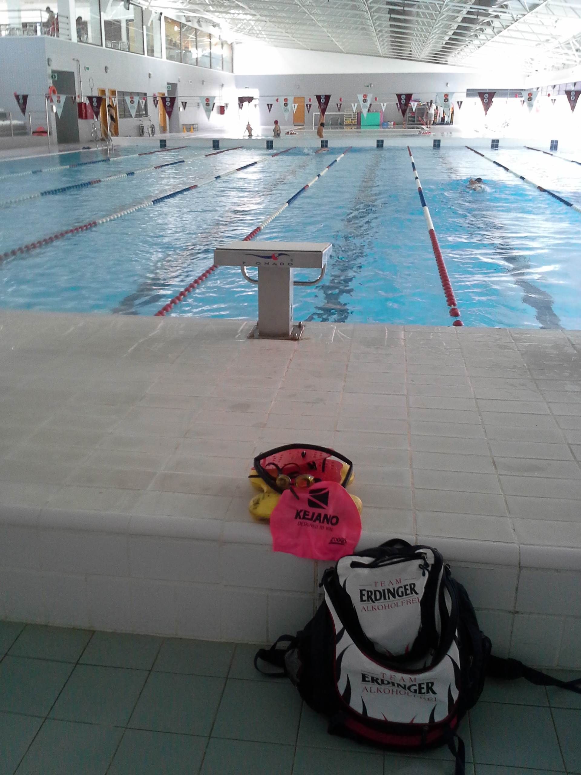 Schwimmen? Geht auch! Nicht in der hoteleigenen Anlage sondern in einem der zahlreichen Hallenbäder. Wir sind immer in das ca. 15 km nahe gelegene Städtchen Silves gefahren, wo in einer super modernen Halle mit acht 25m-Bahnen, jedes mal, jeder mindestens eine Bahn für sich alleine hatte. Auch wenn in einem Trainingslager mit dem Schwerpunkt Rad, das Schwimmen etwas im Hintergrund steht, konnte ich dennoch ein paar satte Einheiten absolvieren und auf kurzen Bahn gut an der Schnelligkeit arbeiten.